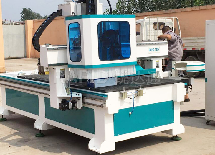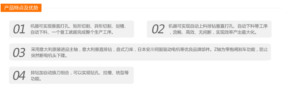 本款產(chǎn)品是板式、實(shí)木家具加工中心,配有上料滾珠平臺,自動下料裝置,意大利原裝進(jìn)口主軸及排鉆,可實(shí)現(xiàn)板式柜體垂直打孔,支持正反而打孔,矩形切割,異形切割,開槽,開料,自動推料下料等功能;同時(shí)也適合板式實(shí)木柜門、移門等多工序雕刻功能。配有銳達(dá)通專用開料優(yōu)化軟件和門板雕刻軟件,優(yōu)化排版,減少板材浪費(fèi),真正提高生產(chǎn)效率。
